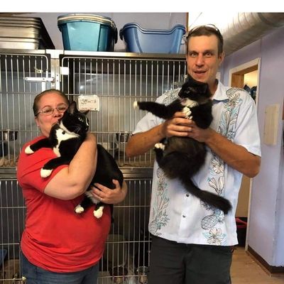 The day we adopted Catalina and Sweeney we went to see a beautiful female Maine coon the looked just like our Dunkin that passed away at 16yrs old. But the beautiful and very sassy little one wanted nothing to do with us. However, this tiny little fluff ball kept following around my husband he then asked about her and her story. She was there because she was a hard case to adopt. 2 failed abdominal surgeries to fix an umbilical hernia that left her at high risk for future problems. However, we fell in love with her and her big green eye anyway. Then there was Sweeney, he wasn't letting us leave that day without him. He had decided for us that we would be his family and that was that! As you can see in the picture because the saying a picture is worth a thousand words. In this case I completely agree with that statement. She was not happy with being held by daddy or anyone else for that matter. But she was sweet and awkward but never scratched or bit him. Just let us know it wasn't appropriate! We took them to their vet appointment a few days later. Our family vet was very sweet and honest about Catalina. She said after all she has been through, she didn't feel Catalina could handle another surgery. We had a choice we could simply love her for the time we had or choice to make the hardest decision. We decided we would give her the time she needed to heal and hopefully recover for the most part.